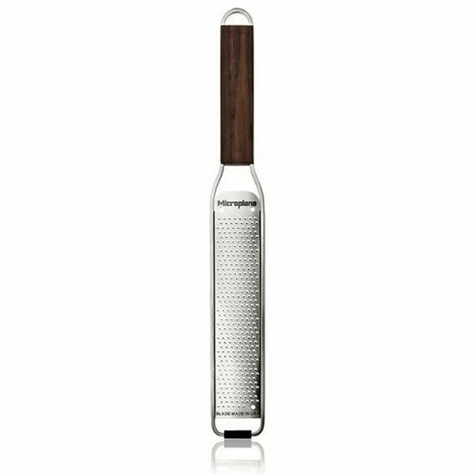 Mit unserem Streben nach der perfekten Kombination aus Stil und Effizienz haben wir die raffinierte und exklusive Master Serie kreiert. Der elegante, anmutige und stylische Walnussholzgriff aus Kentucky, USA erinnert an den Ursprung der Microplane- Küchenreiben, die aus der Holzwerkstatt in die Küche gelangen. Die Kombination aus dem Griff, einem robusten Edelstahlrahmen und den rasiermesserscharfen, photo- geätzten Edelstahlklingen – made in USA – ermöglicht jederzeit optimale Reibergebnisse und sind der neue Status quo unter den Reiben. Mit der Zesterklinge, dem Original, reiben Sie Hartkäse, Ingwer, Knoblauch, Gewürze, Schokolade, Trüffel, Nüsse uvm. und zesten Zitrusschalen ganz fein im Handumdrehen und ohne jeglichen Kraftaufwand.