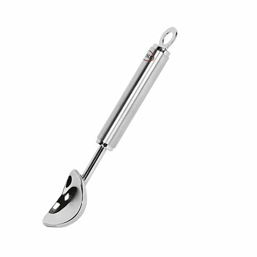 Durch den flachen, feinen Rand des Eisportionierers lassen sich Eiskugeln und Desserts einfach formen.