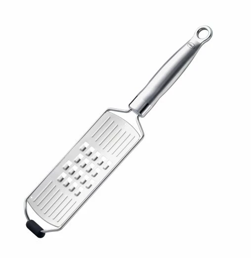 Edle Reibe mit elegantem Design und bester Performance. Komplett aus Edelstahl ist der neue, ergonomische Griff die perfekte Ergänzung zu den säuregeätzten Schneidezähnen der Reibe, die für kraftloses Reiben mit besten Reibergebnissen sorgen. Die konkave Form zentriert das Reibgut, die Anlauf- und Auslauffläche erleichtern das Ansetzen und optimieren den Reibvorgang. Der Silikonstandfuß; ermöglicht rutschfreies Arbeiten in jeder Position. Zudem kann die Reibe direkt über einer Schüssel verwendet werden. Die Grobreibe ist ideal für Schweizer Rösti oder grobe Käsespäne. Inklusive Schutzcover.
