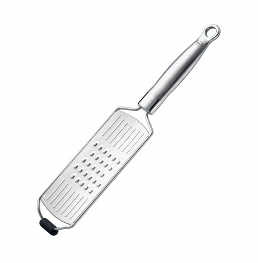 Edle Reibe mit elegantem Design und bester Performance. Komplett aus Edelstahl ist der neue, ergonomische Griff die perfekte Ergänzung zu den säuregeätzten Schneidezähnen der Reibe, die für kraftloses Reiben mit besten Reibergebnissen sorgen. Die konkave Form zentriert das Reibgut, die Anlauf- und Auslauffläche erleichtern das Ansetzen und optimieren den Reibvorgang. Der Silikonstandfuß ermöglicht rutschfreies Arbeiten in jeder Position. Zudem kann die Reibe direkt über einer Schüssel verwendet werden. Die Mittelreibe ist unverzichtbar für Rohkostsalate, Käse oder Äpfel im Müsli. Inklusive Schutzcover.